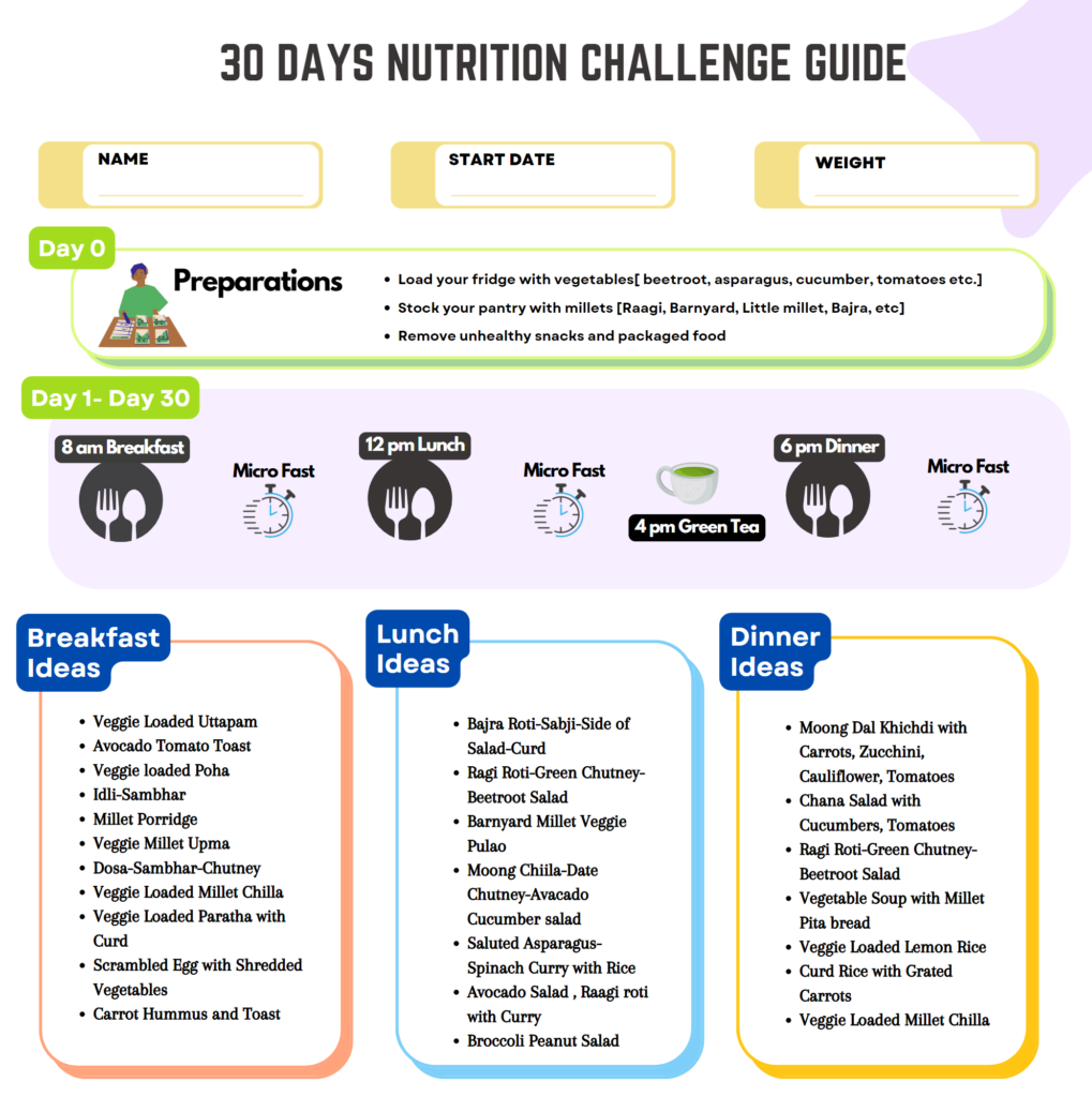 This challenge is perfect for anyone who wants to develop healthy habits and feel their best. It’s not about deprivation, but about making smart choices that nourish your body. So, grab your favorite veggies, explore the world of millets, and give micro-fasting a try! You won’t regret it.
